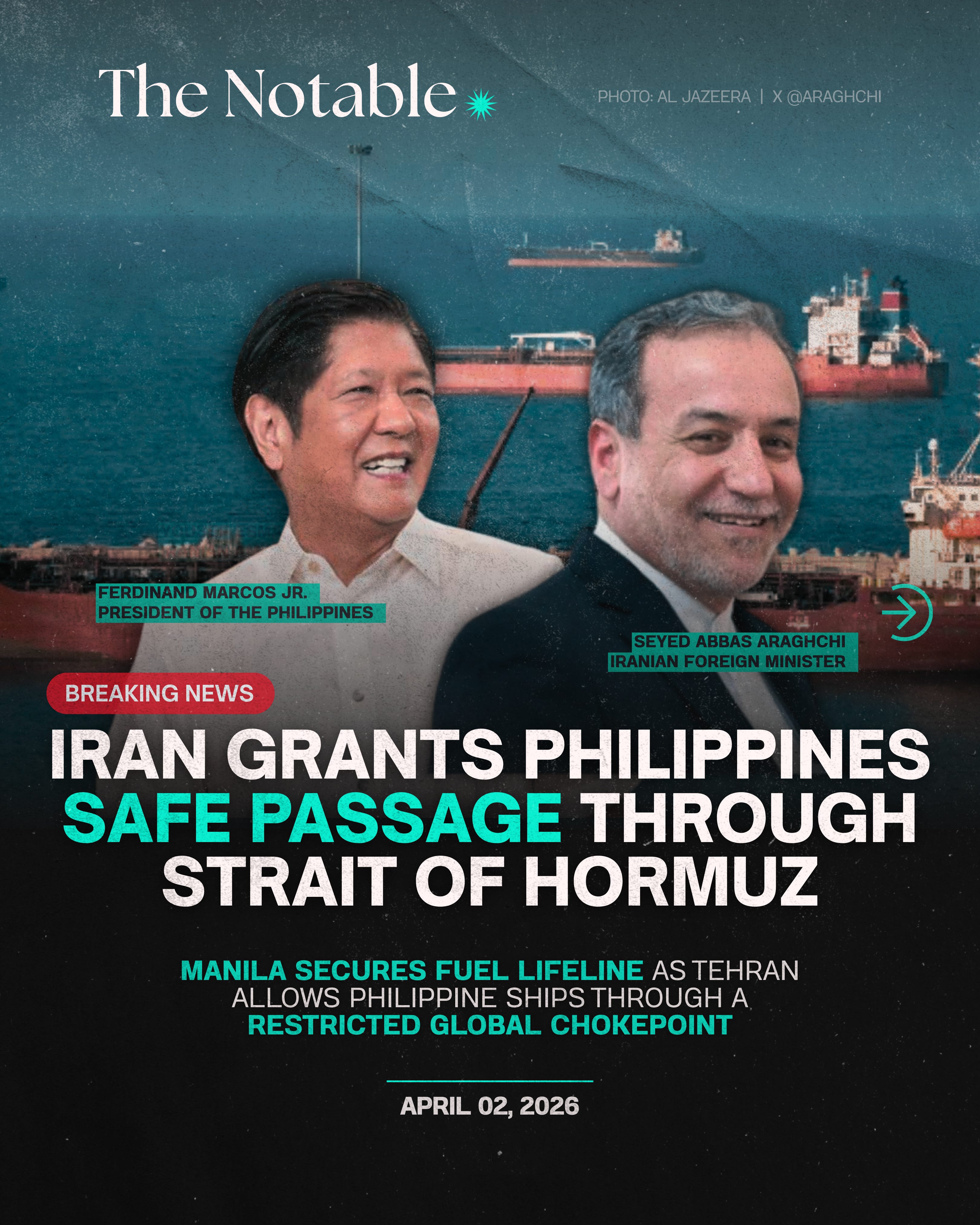 Manila secures fuel lifeline as Tehran allows Philippine ships through a restricted global chokepoint. (April 2, 2026)