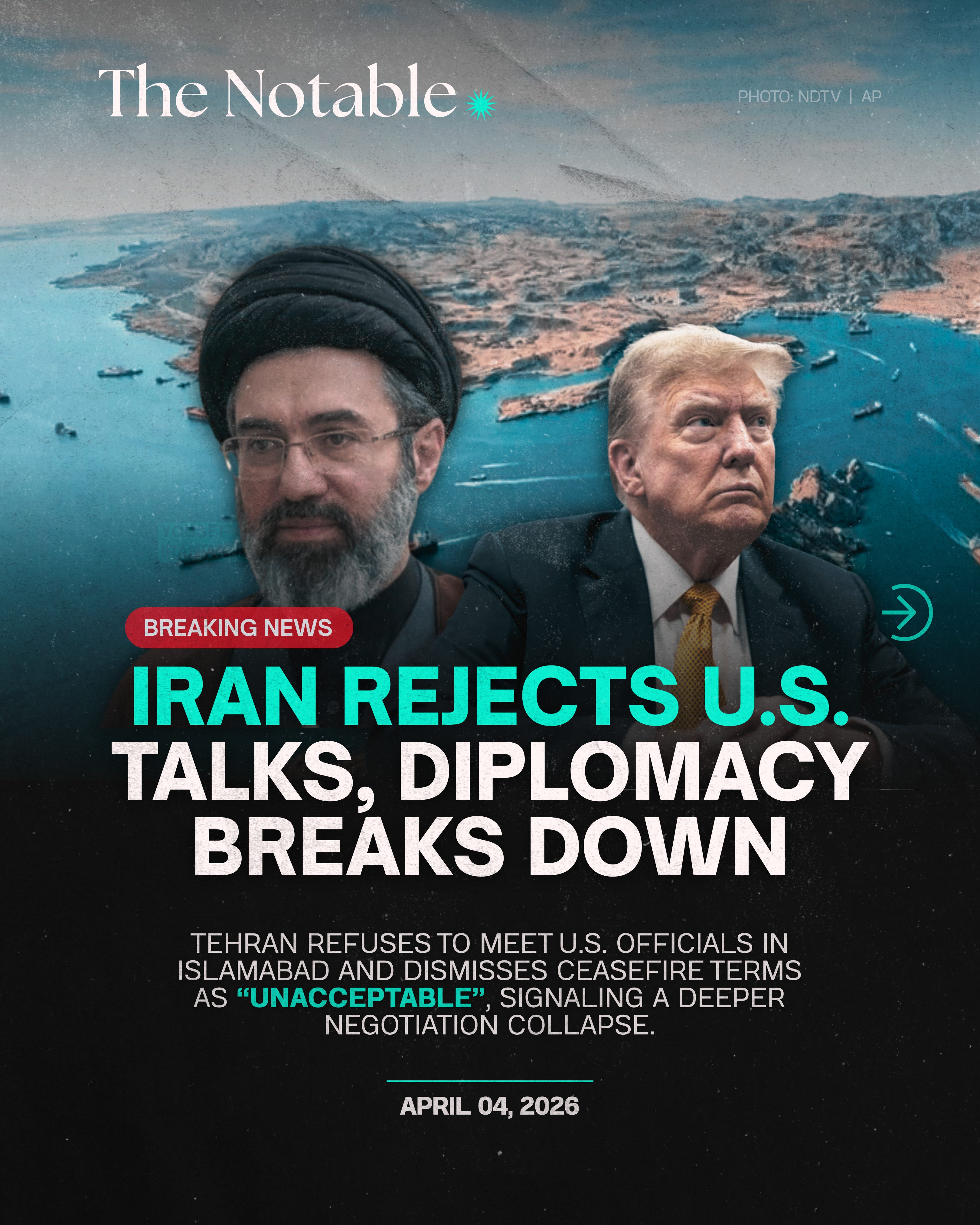 Tehran refuses to meet U.S. officials in Islamabad and dismisses ceasefire terms as "unacceptable", signaling a deeper negotiation collapse. (April 4, 2026)