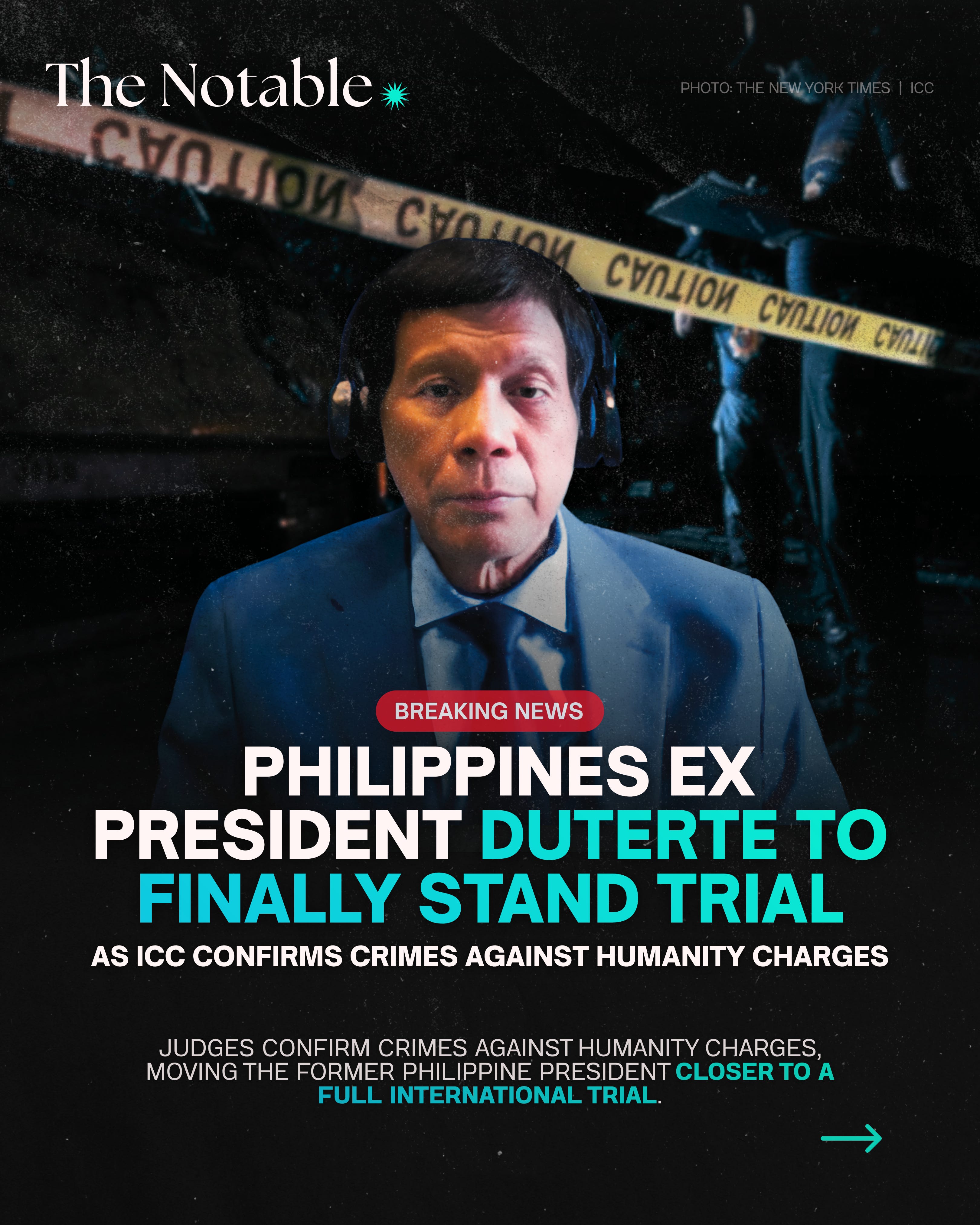 Former Philippine President Rodrigo Duterte to finally stand trial as ICC confirms crimes against humanity charges.