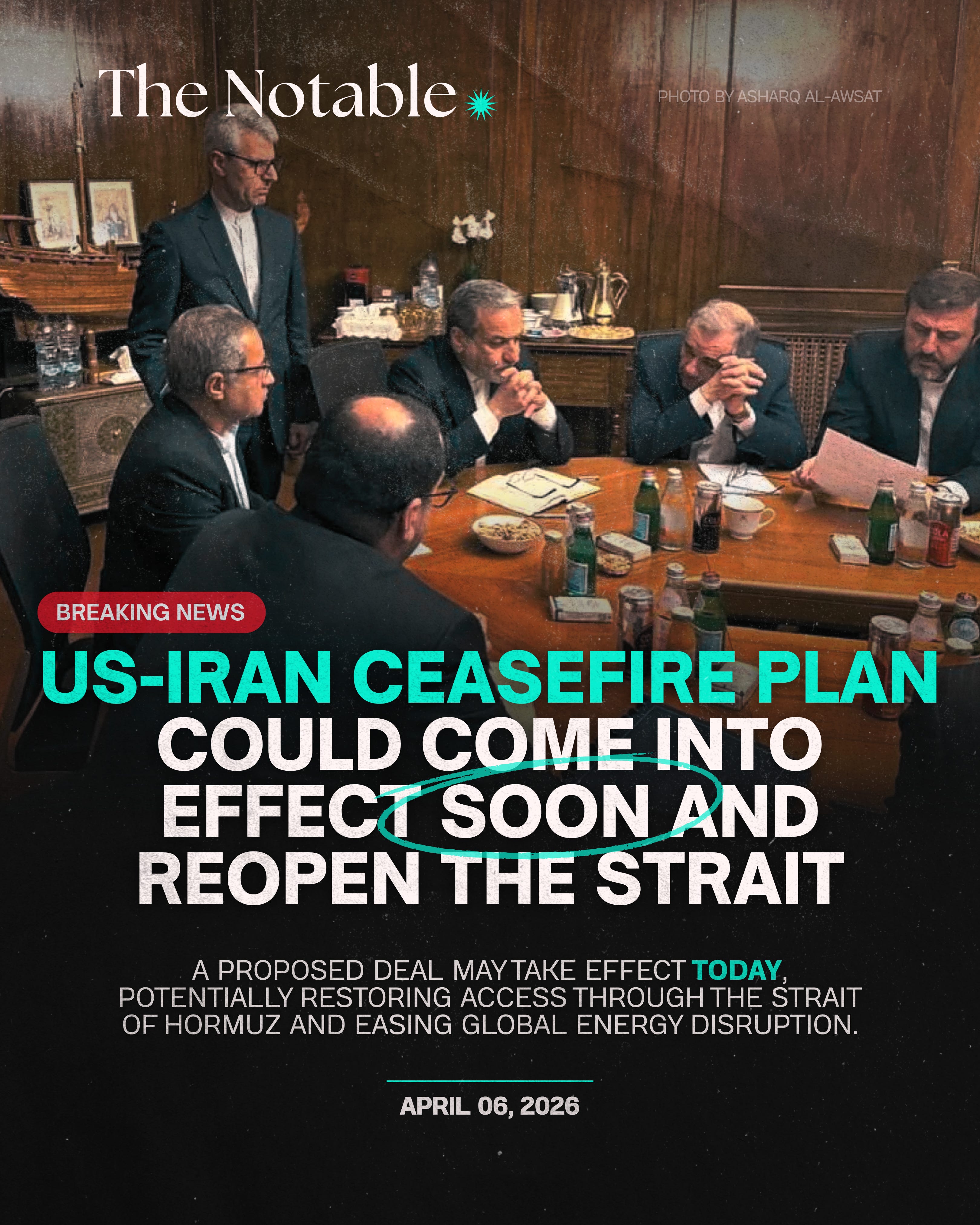 A proposed deal may take effect today, potentially restoring access through the Strait of Hormuz and easing global energy disruption. (April 6, 2026)