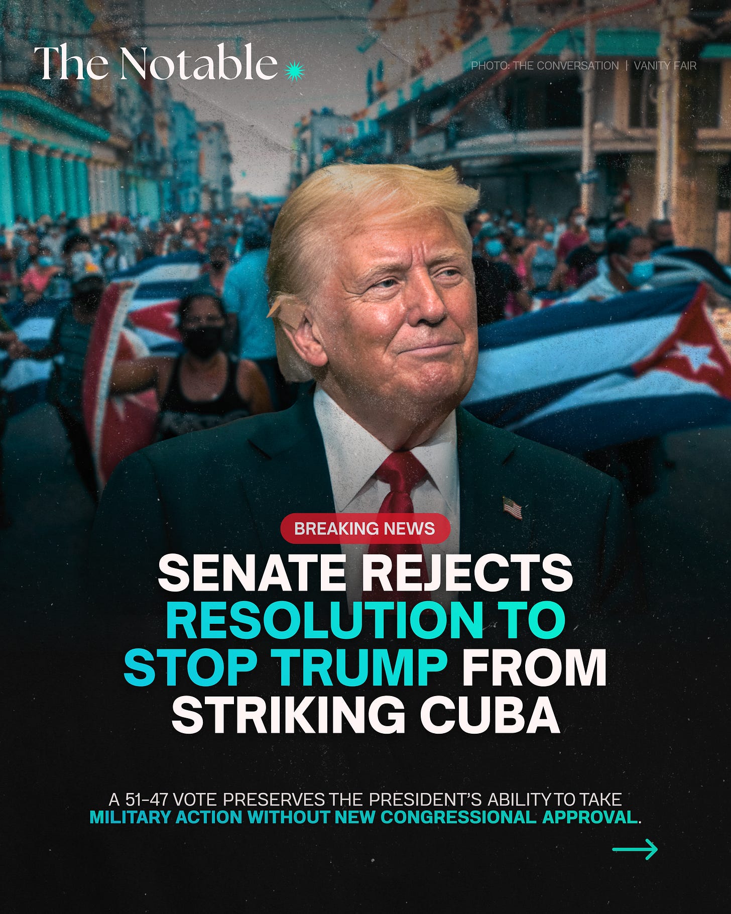 U.S. Senate rejects resolution to stop Trump from striking Cuba